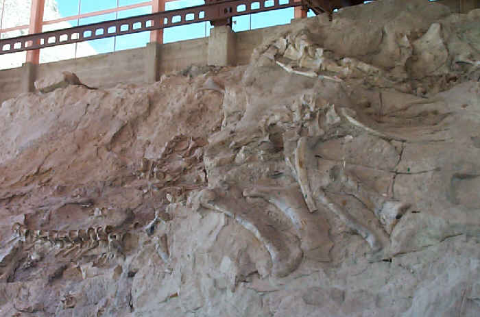 The "dinosaur" part of the monument was interesting because they left many of the bones in the rock where they were found. The visitor center is built around the rock, which has been tilted to a 69 degree angle by uplift within the earth's crust.
