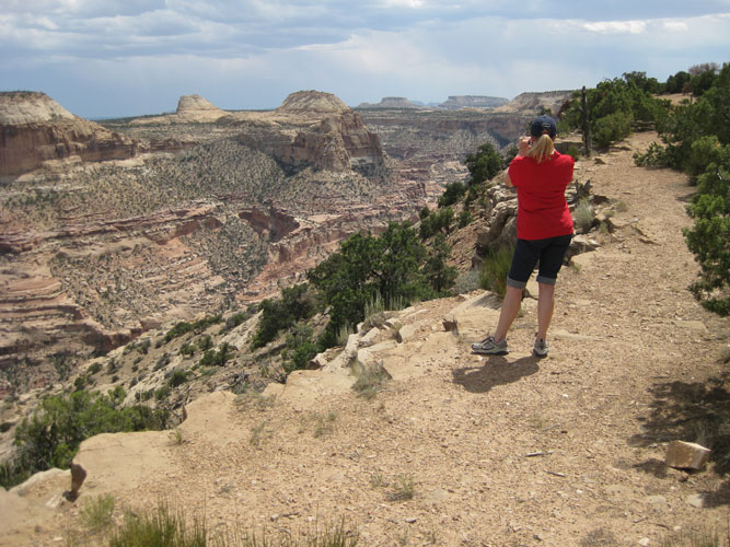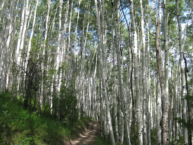 We started out at Vega State park, on the Grand Mesa east of Grand Junction. There were miles and miles of two-track trails going in every direction. The park provides a map of the trail system that worked well for us. Each of our rides was 40 to 60 miles, running though the trees from the 8,500' level at camp to over 10,000'. A majority of trails pass through pristine aspen forest. A few of the trails were rocky, several were wet, and some were muddy; but all were scenic. For the ladies there were two unique highlights here, abundant wildflowers and friendly marmots. The rangers go out of their way to accommodate those critters.