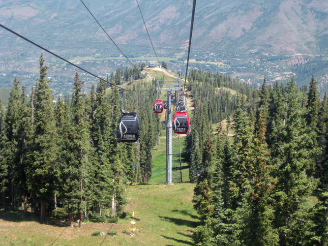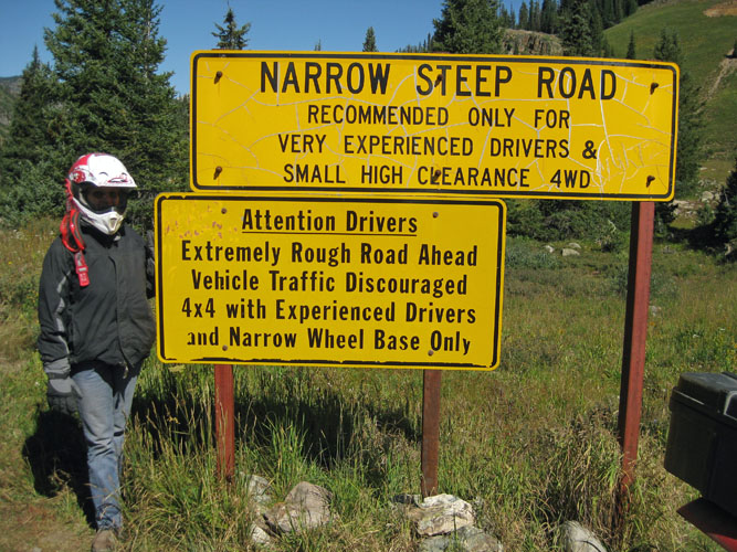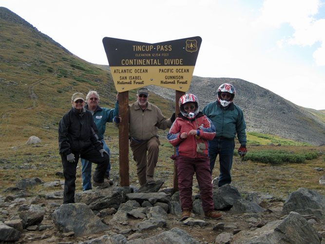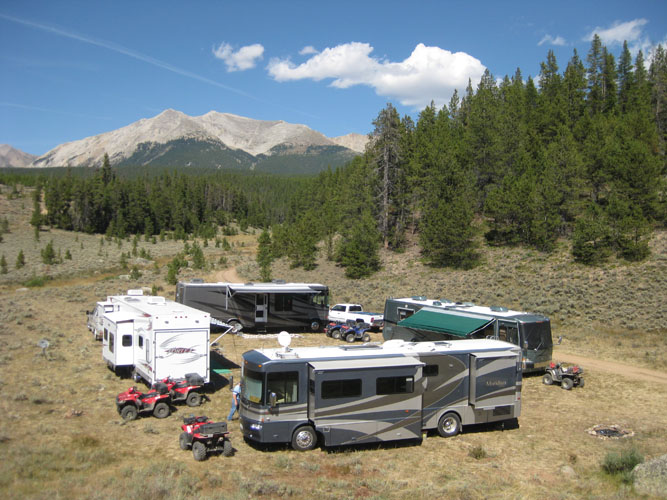 We spent the most time riding out of Taylor Park, north of Gunnison. Disbursed (free) camping is permitted all over the valley and we found a great camp spot in a secluded area on a dead-end side road. It was dust free and we could neither see nor hear another vehicle. There are hundreds of miles of trails, most of which are old mining roads as opposed to 2-track trails. We crossed the Continental Divide on several rides and climbed over at least 5 or 6 other passes that exceeded 12,000'..One ride took us over Taylor Pass to the top of Aspen Mountain where we caught the tram into town to mingle with the "beautiful people". Perhaps the best ride we did was when we trailered out to Crested Butte and took the hairy road over Paradise Divide into Marble.