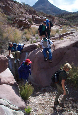 We were "lucky" enough to be hiking after one of the area's infrequent rainfalls, and the resulting water problems (falling in quicksand or sitting in slime!) made our trip all the more interesting.