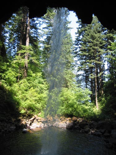 View from inside the groove behind the falls