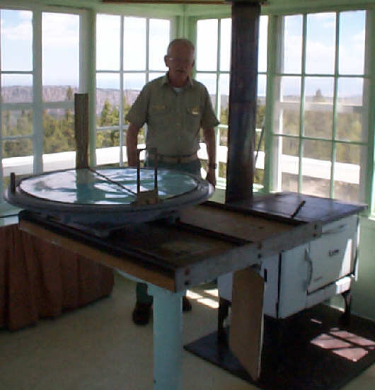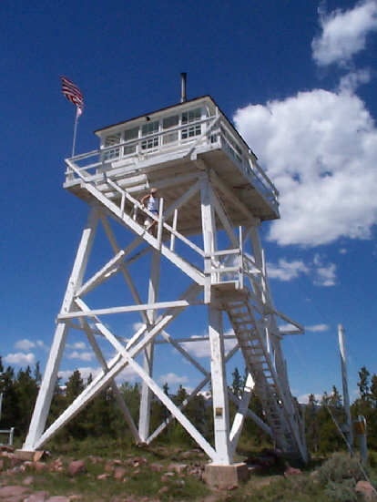 The lake behind the dam runs through the foothills of the High Uintas ("you intas"). This is the part of the Rocky Mountains where the first beaver trapper's rendezvous was held. We took a dirt road out to see the last remaining wooden fire tower in the state. The old man working the fire tower had all the comforts of home up there: bed, wood stove, etc.