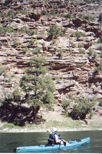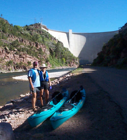 The most exciting thing we did here is float the Green river through the rapids below the dam. The Dept of the Interior publication for Flaming Gorge describes a float trip down the river as: "a leisurely pace with occasional rapids injecting excitement". Let me tell you, the "excitement" is enhanced when you do it in 15 foot long sea kayaks that were not designed for maneuverability.