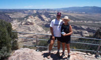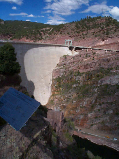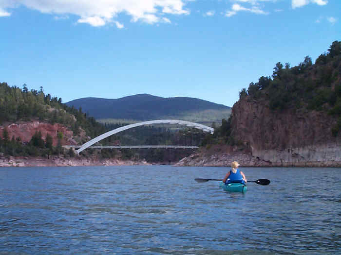 Flaming Gorge is on the Green River in northeastern Utah. We had a beautiful and secluded camp spot high on a hill above the lake. There is a terrific view of the gorge from the visitor center 1,700 feet above the 400 foot deep water. The "flaming" pink canyon walls and the deep blue water in the gorge make a great contrast. As a first order of business, we put the kayaks in the water to check it out.