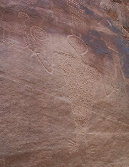 We found a lot of Fremont Indian rock art hidden away in this area. We thought this one example showed very clearly how the ancient culture chipped their petroglyphs into the rock instead of simply scratching them onto the surface.