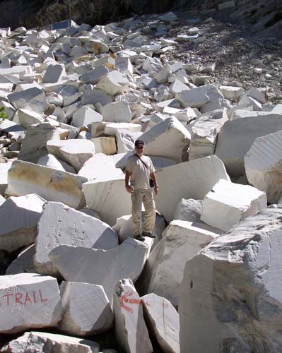 We found a safe dirt road and followed it to a marble quarry. A sign at road's end offered to let us take all we could carry at no charge. The catch was that each block weighed many tons and you would have to carry it at least 1/2 mile along a narrow trail to your car! The stone being quarried here is the purest white marble in the world. The headstone at the Tomb of the Unknown Soldier came from here. We took their "free marble" offer to heart and pocketed a few small chips as souvenirs.