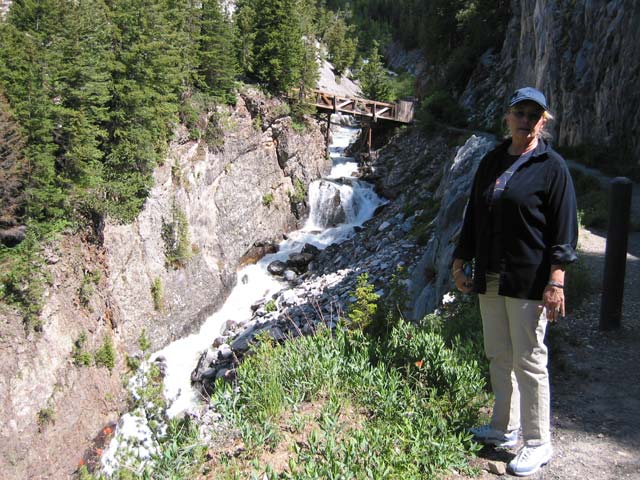 One objective of this trip was to take a jeep trail to an oft photographed old mill that we first saw displayed at a Henderson art festival. This was our first experience with Colorado backroads and we quickly learned that there is a BIG difference between a "4WD road" and a "jeep trail"! Our full-size, long wheelbase truck doesn't fit on narrow jeep trails; a real disadvantage when you're looking at sheer 500' drops! We passed a sign saying "4 Wheel Drive Required" and the road started to get rocky and rough. I thought "this is doable". Then the road turned down a steep hill and got narrower by the minute. The driver's side was scraping the cliff wall on one side and the other side dropped off to eternity. Patty opened to door to see how much road was left and found herself looking straight down into the void! We couldn't get out of the truck! Backing up was not an option so we inched along until we reached the bottom and could drive into the creek and turn around. Going back up was just as harrowing. We later read that this road is rated as the most dangerous jeep trail around. Seven people died going over a cliff on that road last year! Patty had no trouble extracting a promise from me to avoid (most) similar situations in the future.