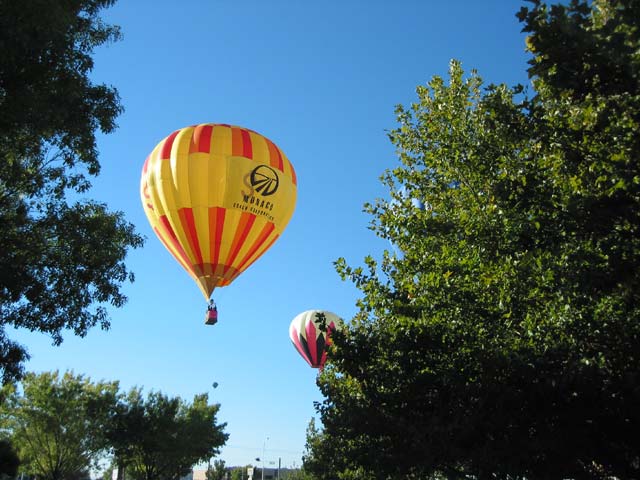 Hot air balloons have no steering; the only directional control they have is up and down; the pilot doesn't know where he's going to land until he sees where the wind is taking him. That's why a chase vehicle (or two) is necessary. The unique weather pattern in Albuquerque (called the "box") makes it an ideal spot for ballooning. At ground level, the winds generally flow down the Rio Grande valley from north to south, while 1,000 feet higher the winds reverse direction and flow from south to north. In between the air is (virtually) still, allowing balloons to hover virtually motionless for long periods of time.