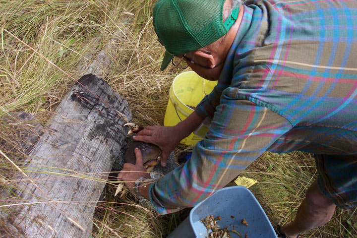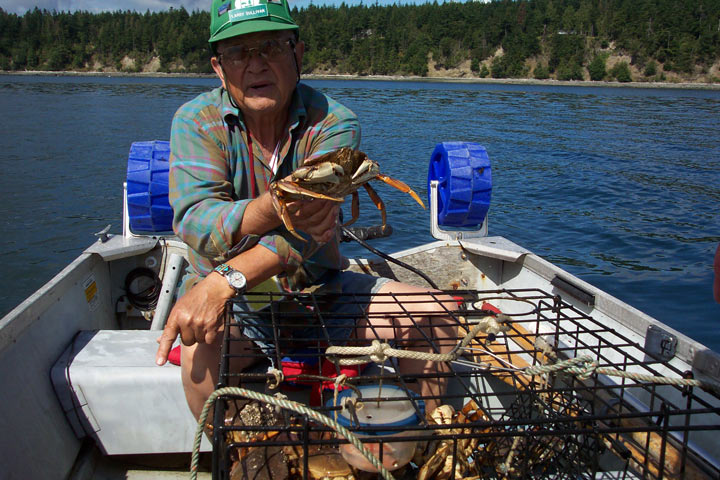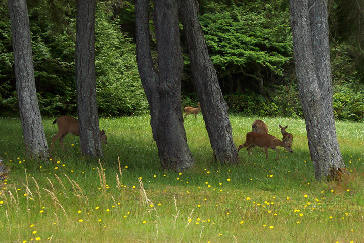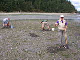 This is the most laid-back of any park that we've been to. Maybe it's the island environment (some refer to Lopez island as "Slowpez"). The park has 2 rangers, 3 park assistants, and 1 volunteer in addition to us. This is also the friendliest park we've been in. The park staff has group crabbing and clamming sessions; they then get together for a community meal made from the harvest. Larry, the other volunteer, showed us how to prepare crabs: hold him by the legs and claws, get his attention by rapping his nose on a rock, then tear off the shell and rip him in half. No thank you! The clams are a lot easier, just steam them until they die. Their muscle relaxes, the shell opens and they're ready to eat.