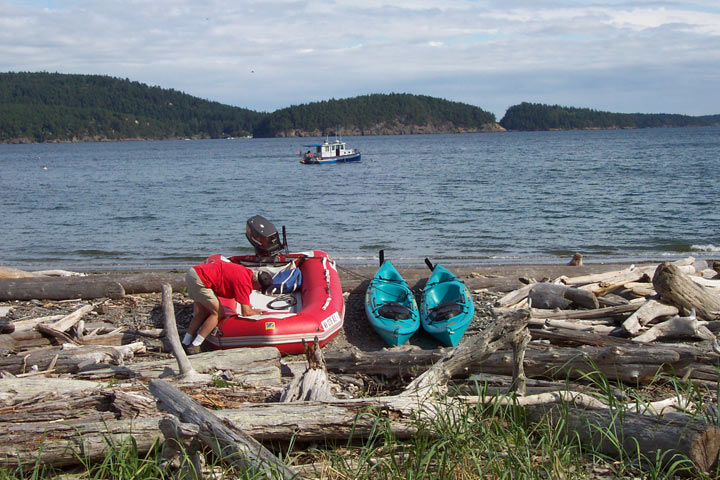 This is our 6th year being retired. We began volunteering in the parks a few years ago and thoroughly enjoy it. In addition to the altruistic reasons, we get to experience what it's like to actually LIVE in another area of the country. This year we signed up to camp-host for two month at Spencer Spit, a Washington State Park on Lopez Island in the San Juans. The campground is DEEP in the forest but the activities are on the beach. We packed up our water toys and arrived ready to play.